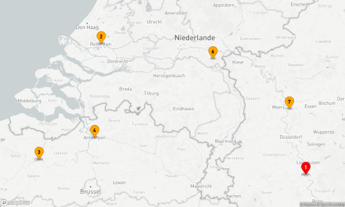 - Route: Köln - Rotterdam - Gent - Antwerpen (2 Tage) - Nijmegen (2 Tage) - Duisburg - Köln
