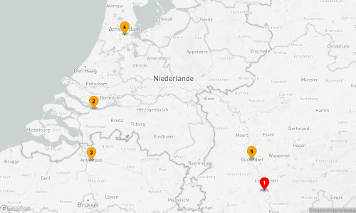 - Route: Köln - Rotterdam - Amsterdam - Antwerpen (2 Tage) - Nijmegen - Düsseldorf - Köln