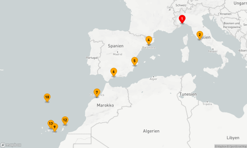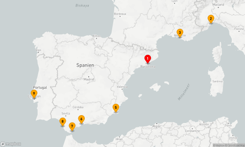 - Route: Barcelona - Savona - Marseille - Seetag - Cartagena (ES) - Malaga - Gibraltar - Cádiz - Lissabon - Seetag (2 Tage) - Barcelona
