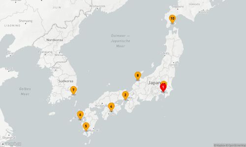 - Route: Tokyo (Yokohama) - Kobe (2 Tage) - Kochi - Kagoshima - Nagasaki - Busan - Kanazawa - Seetag - Hakodate - Seetag - Tokyo.