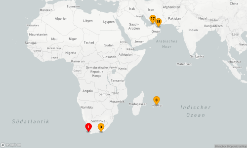 - Route: Kapstadt - Seetag - Port Elizabeth - Seetag (4 Tage) & SeaDestination: Indischer Ozean - Port Louis - Seetag (6 Tage) - Maskat - Seetag - Dubai.