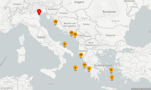 - Route: Marghera (Venedig) & SeaDestination: Lagune von Venedig (Fusina) - Bari - SeaDestination: Calypsotief - Santorin - Mykonos - Katakolon & SeaDestination: Ionisches Meer - Marghera (Venedig) & SeaDestination: Lagune von Venedig (Fusina) - Bari - Korfu -& SeaDestination: Ionisches Meer - Argostoli / Kefalonia - Dubrovnik - Kotor - Zadar - Marghera (Venedig)