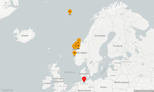 - Route: Hamburg - Seetag - Måløy - Kristiansund - Molde - Ålesund - Nordfjordeid - Hellesylt - Geirangerfjord - Geiranger - Bergen - Europäisches Nordmeer - Seetag - Hamburg
