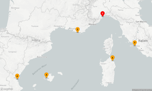 - Route: Rom / Civitavecchia - Savona - Sea Destination - Marseille - Barcelona - Am dunkelsten Punkt des Balearischen Meeres - Ibiza - Sea Destination - Seetag - Palermo - Rom / Civitavecchia