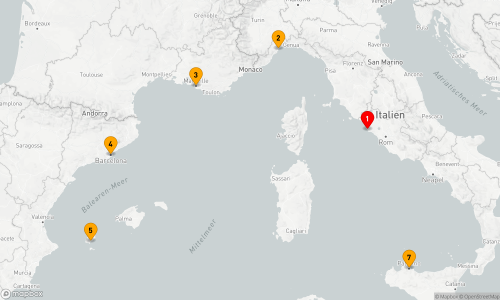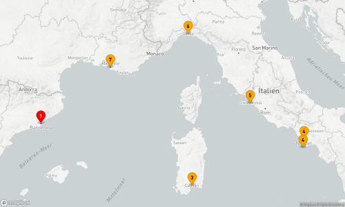 - Route: Barcelona - Am dunkelsten Punkt des Balearischen Meeres - Cagliari - Neapel - Capri - Rom / Civitavecchia - Genua - Sea Destination - Marseille - Barcelona