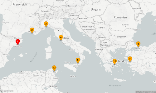 - Route: Barcelona - Marseille - Savona - Rom / Civitavecchia - Messina - Seetag - Izmir - Istanbul (2 Tage) - Seetag - Athen (Piräus) - Seetag - La Goulette - Seetag - Barcelona