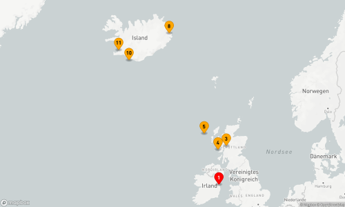 - Route: Dublin - Seetag - Fort William - Iona - St. Kilda - Seetag - Seyðisfjörður (2 Tage) - Heimaey - Reykjavík
