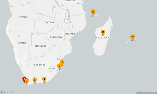 - Route: Kapstadt - Hermanus - Mossel Bay - Port Elizabeth - Seetag - Durban - Richards Bay - Seetag (2 Tage) - Madagaskar - Seetag - Mayotte - Madagaskar - Seetag - Madagaskar - Seetag - Port Louis