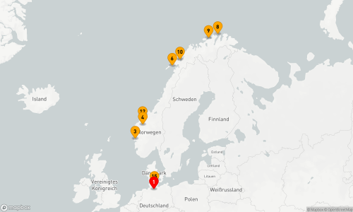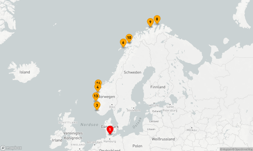 - Route: Kiel - Seetag - Bergen (2 Tage) - Stavanger - Arendal - Seetag - Kiel