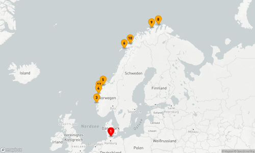 - Route: Hamburg - Seetag - Bergen - Geiranger - Kristiansund - Svolvær - Seetag - Honningsvåg - Hammerfest - Harstad - Seetag - Molde - Seetag (2 Tage) - Kiel