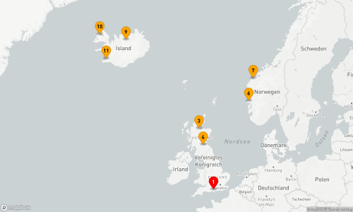 - Route: Southampton - Seetag - Invergordon - South Queensferry - Seetag - Bergen - Ålesund - Seetag - Akureyri - Ísafjörður - Reykjavík (2 Tage)