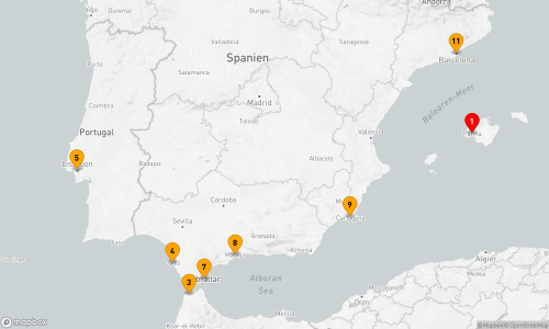 - Route: Palma de Mallorca - Seetag - Tanger - Cádiz - Lissabon - Seetag - Gibraltar - Malaga - Cartagena (ES) - Seetag - Barcelona - Palma de Mallorca.