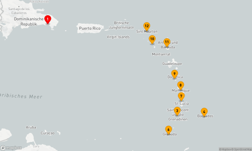 - Route: La Romana - Seetag - Kingstown/VC - Bridgetown (2 Tage) - St. George's - Castries - Fort-de-France - Roseau - Basseterre - Saint John's - Philipsburg - Seetag (2 Tage) - La Romana