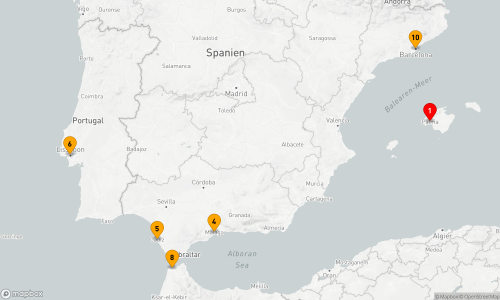 07.08.2026 - 17.08.2026 - Route: Palma de Mallorca (2 Tage) - Seetag - Malaga - Cádiz - Lissabon - Seetag - Tanger - Seetag - Barcelona - Palma de Mallorca