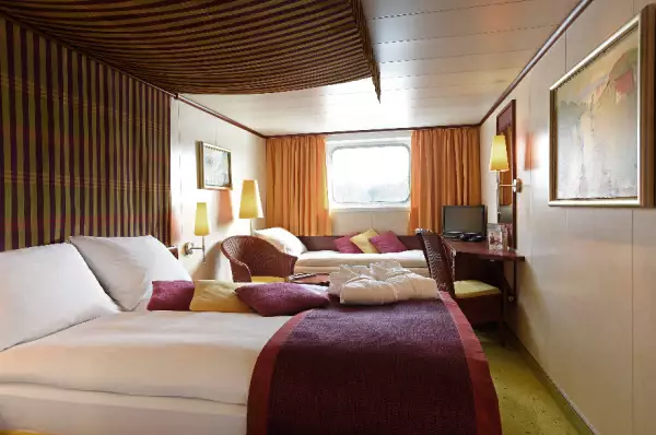 - A-Kabine: Deck 1 | 2-Bett-Außenkabine | Doppelbett | 14,5 m² | Ein nicht zu öffnendes Fenster